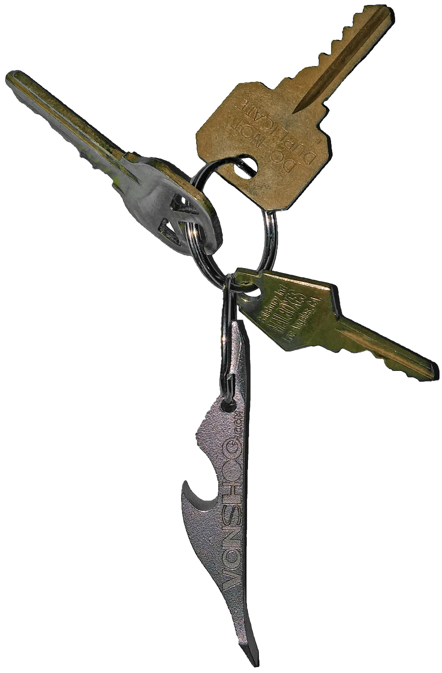 The VONSHOQ multi-tool has a Phillips screwdriver on one end, and on the opposite end, a paint key opener which triples as a functional flathead screwdriver and light duty cutting device. It also has a super handy bottle opener along it’s back. Sleek and sexy, the Vonshoq fits perfectly on a key ring as it is approximately as long as your car key.